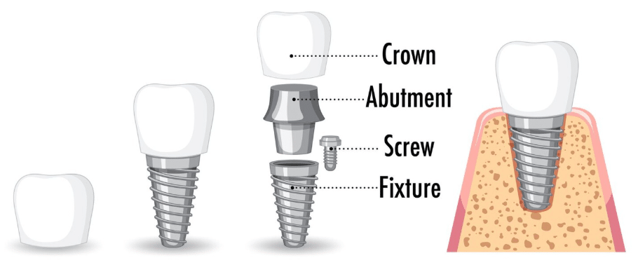 Diş implantı, üç temel parçadan oluşan kompleks bir sistemdir: